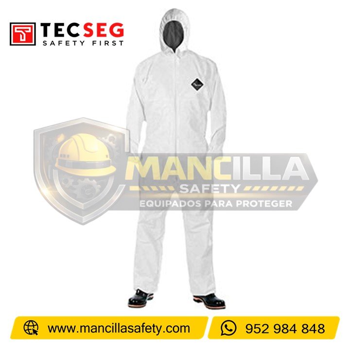 - El traje desechable Tecseg brinda protección, comodidad y economía. Está compuesto de una tela suave y duradera que proporciona una excelente protección contra partículas secas y aerosoles ligeros de productos líquidos que son transportados por el aire.